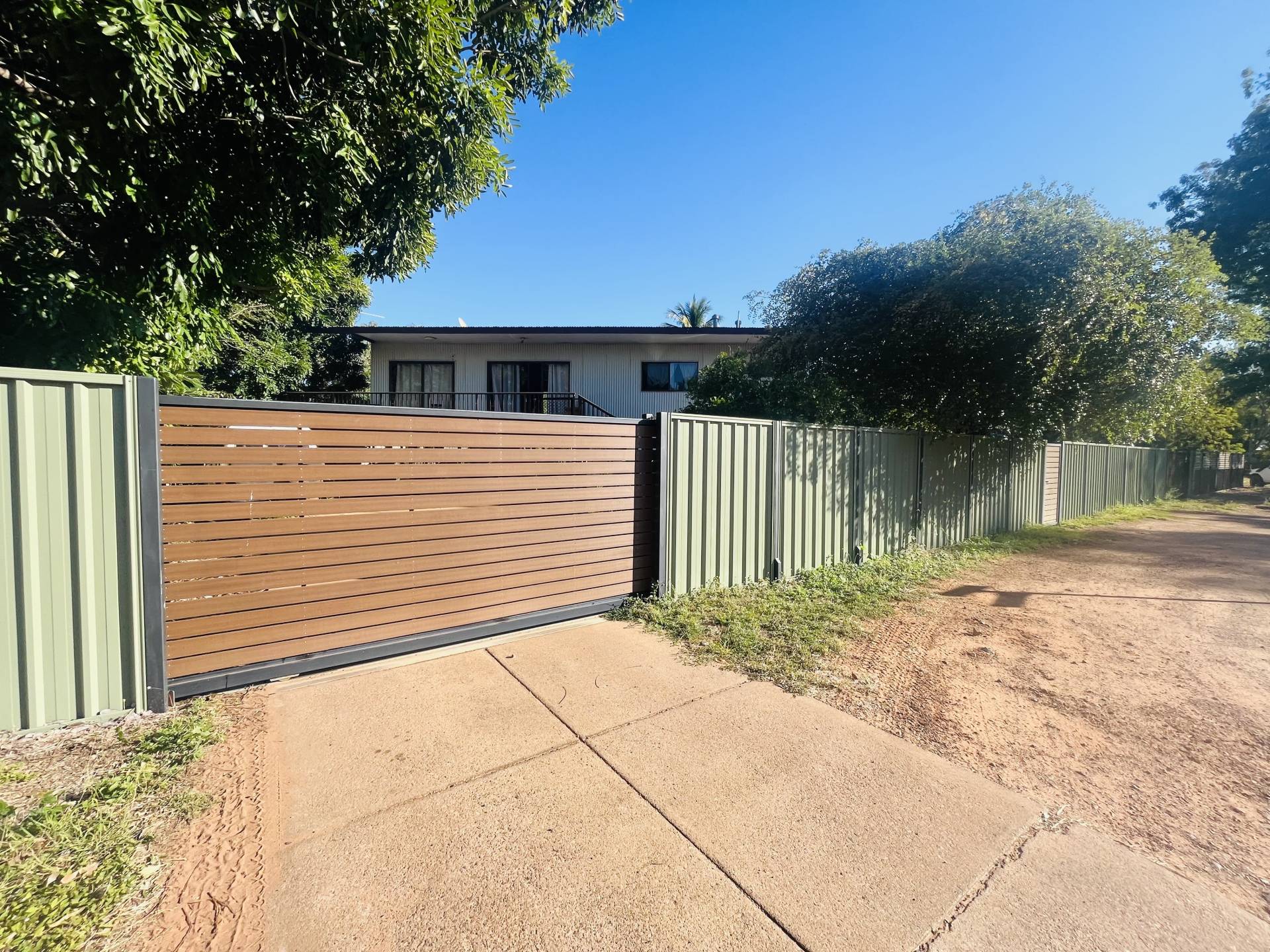 The long frontage of the property includes 2x sliding gate access (1x electric remote) and 1 pedestrian gate access.