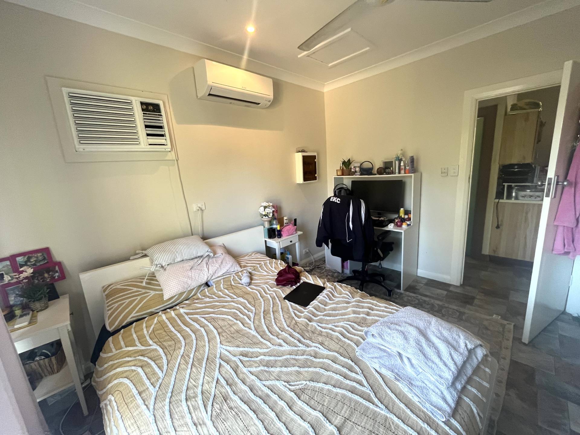 Originally a 3 bedroom home which has been modified to a 2 bedroom to increase the size of the open plan living room. The upstairs bathroom features a spa bath with shower.